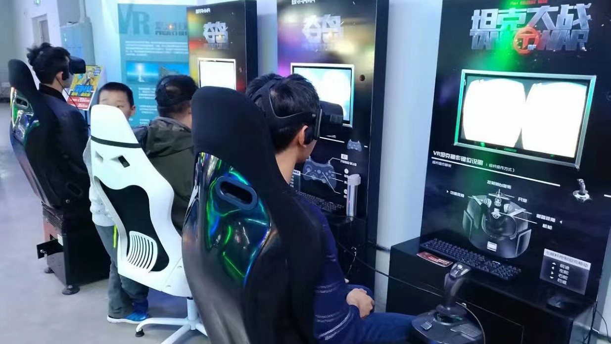 线下的产品在设备上,我们不仅有VR设备来满足身临其境的沉浸式体验,还配备了动感座椅来增强动感上的体验。使玩家能够实时感受到游戏内驾驶坦克时的前进、转向、开炮攻击等不同的动感体验。在游戏操控上,我们也为不同类型的玩家做出了多种友好的选择权,以此来满足各类玩家的操作习惯。例如仿真的多功能操控杆是专业玩家的最爱,游戏手柄操控老少皆宜,还有满足传统PC玩家的键盘式操控。
